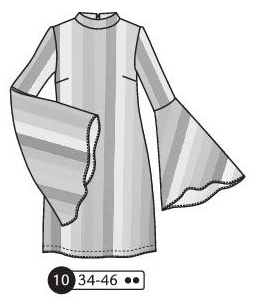 Robe courte en viscose à manches longues avec de grands volants. Col légèrement montant et pinces poitrine. Fente dans le dos avec 3 boutons et brides pour fermer