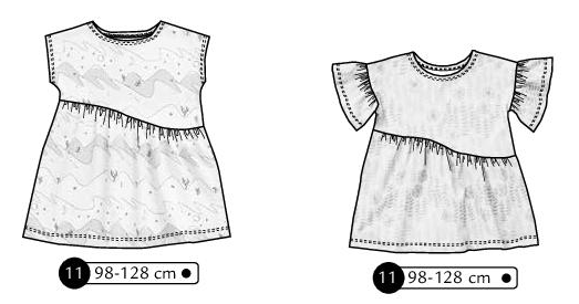 11-Desert 10 décembre 2025 Robe ou tunique sans manche ou avec manchons froncés. Empiècement devant et dos asymétrique et froncé Disponible en 98-104-110-116-122-128 cm 03/2022 Précédent 9-Best Ever Plus récent 12-Butterfly