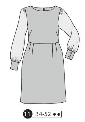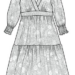 Robe courte aux manches longues froncées aux emmanchures et aux poignets avec bracelets de poignets boutonné. Pince sous poitrine et pinces devants et dos jupe. Fermeture invisible au dos et pinces à l’encolure dos