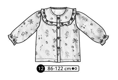 Chemisier manches longues resserrées aux poignets formant des volants. Elles sont froncées sur le haut de l’emmanchure. Volant devant et dos. Patte de boutonnage devant
