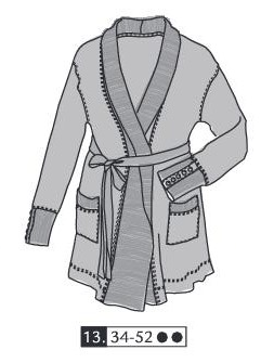 13-Red Soft Touch 10 décembre 2025 Cardigan manches longues avec poignets et fausses boutonnières. Se ferme avec une ceinture Disponible en 34-36-38-40-42-44-46-48-50-52 05/2011 Précédent 12-Wool Denim Crops Plus récent 14-Vintage Rose