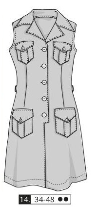 14-Benevento 10 décembre 2025 Robe courte en jeans sans manche. Pinces devant et dos et pinces à l’encolure dos. Multiples poches devant. Fermeture par boutons devant Disponible en 34-36-38-40-42-44-46-48 02/2011 Précédent 13-Caprese Plus récent 15-Napoli