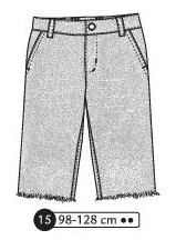 Bermuda en jeans avec bas des jambes à cru, poches aux hanches, braguette et bouton à la ceinture. Empiècement, poches plaquées et taille élastiquée au dos