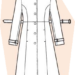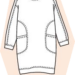 Robe à manches longues froncées, fente et bandes de poignet avec boutons. Pinces poitrine, jupes à 2 bandes froncées devant et dos. Col avec volant foncé, fente formant un col V se fermant avec un lien.