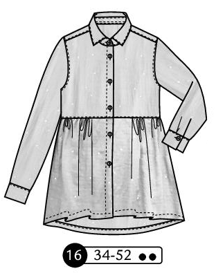 16-Kay 10 décembre 2025 Chemisier manches longues avec fente, pli et bouton au poignet. Col avec pied de col, jupe froncée et boutonnage devant. Empiècement dos Disponible en 34-36-38-40-42-44-46-48-50-52 05/2020 Précédent 15-Thelma Plus récent 3-Babette