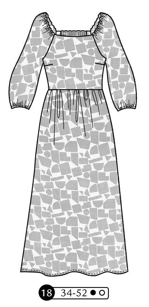 18-Sunset Blvd 10 décembre 2025 Maxi robe longue avec manches 3/4. Encolure carrée et élastiquée, pinces poitrine, jupe froncée et bas des manches élastiqué. Empiècement dos smocké Disponible en 34-36-38-40-42-44-46-48-50-52 02/2021 Précédent 17-Worker Look Plus récent 5-Aguilegia
