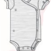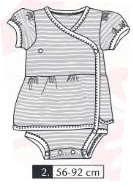 Body à jupette qui se croise devant. Manches courtes, se ferme avec des pressions devant et à l’entrejambe. Jupe maintenue dans le bord côte des devants.