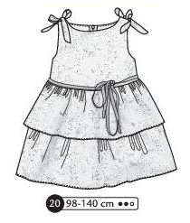20-Meadow Flowers 10 décembre 2025 Robe courte sans manches avec nœuds sur les épaules, jupe à volants froncés. Ceinture à la taille et fermeture invisible au dos Disponible en 98-104-110-116-122-128-134-140 cm 03/2019 Précédent 19-Little Mermaids Plus récent 24-Walking in the Wilds