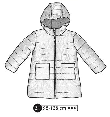21-Shimmering Rose 10 décembre 2025 Manteau en matelassé avec capuche. Poches plaquées devant et fermeture éclaire sur toute la longueur Disponible en 98-104-110-116-122-128 cm 06/2021 Précédent 20-Cosy Merino Plus récent 22-Platinum