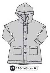 23-Blue Monday 10 décembre 2025 Gilet cardigan long avec capuche et poches plaquées. Boutonné devant Disponible en 116-122-128-134-140-146 cm 06/2014 Précédent 21-Happy Combo Plus récent 24-Simple Plain