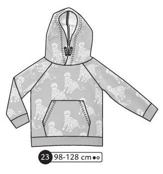 23-Wild Yellow 10 décembre 2025 Sweat à capuche et manches raglans. Poche kangourou plaquée devant. Poignets en bord côte comme la ceinture Disponible en 98-104-110-116-122-128 cm 01/2021 Précédent 36-Waves Plus récent 24-Lots of Chickens