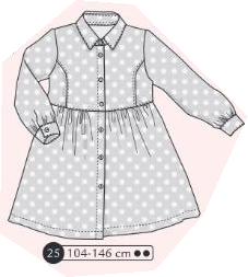 25-Polina 10 décembre 2025 Robe avec col et pied de col, manches longues boutonnées aux poignets. Boutonné devant Disponible en 104-110-116-122-128-134-140-146 cm 01/2013 Précédent 24-Natalia Plus récent 26-Chillax