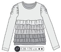 27-Misty Day Palette 10 décembre 2025 Tee shirt manches longues, froncées sur le haut des bras, volants devant et dos Disponible en 128-134-140-146-152-158-164-170 cm 06/2013 Précédent 26-Pumpkin Pie Plus récent 28-Everyday Grey