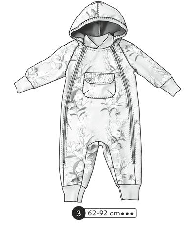 Combinaison softshell aux manches raglans avec capuche amovible grâce à des pressions. Col en bord côte comma les poignets et les chevilles. Poche à rabat plaquée devant. Fermeture éclaire sur les côtés descendant jusqu’aux genoux.