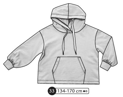 33-Loose Fit 10 décembre 2025 Sweat large avec capuche, emmanchure descendue, poignets resserrés avec du bord côte. Poche kangourou devant Disponible en 134-140-146-152-158-164-170 cm 01/2021 Précédent 32-Silhouette Plus récent 34-Ultimate Gray