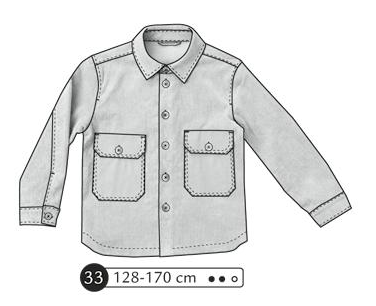 33-Shirt Style 10 décembre 2025 Veste de velours avec fente et bouton aux poignets. Poches plaquées à rabat devant, empiècement dos, col avec pied de col. Boutonnée devant Disponible en 128-134-140-146-152-158-164-170 cm 04/2022 Précédent 32-Chestnut & Gray Plus récent 34-Oversized