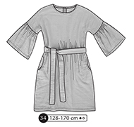 Robe courte manches volantées 3/4 et froncées au niveau des biceps. Pas de couture d’emmanchure. Poche sur les côtés. Fente avec bouton et bride au dos, ceinture à nouer