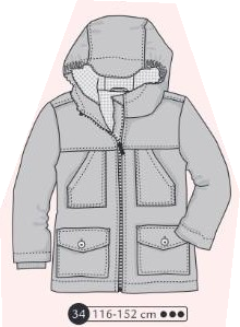 34-Windy Days 10 décembre 2025 Parka, manteau mi saison avec capuche, multiples poches et empiècement devant et dos. Bord côte aux poignets en plus des ourlets. Fermeture devant Disponible en 116-122-128-134-140-146-152 cm 01/2013 Précédent 33-Brandon Plus récent 35-Special Edition