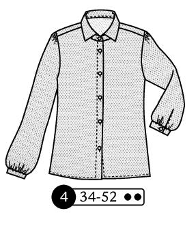 Chemisier souple à manches longues avec fentes et bouton au poignet et fronces. Col avec pied de col, fronces sur le haut des manches et boutonnage devant. Fronces au dos sous l’empiècement