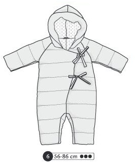 6-Winter Luxe 10 décembre 2025 Combinaison pilote en matelassé avec capuche et manches raglans. Fermeture avec liens sur le côté devant Disponible en 56-62-68-74-80-86 cm 06/2014 Précédent 5-Sweet Winter Plus récent 7-Warm Toes