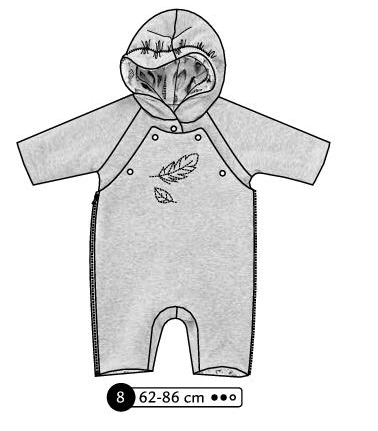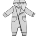 Combinaison pilote à manches raglans et capuche élastiquée et avec pinces. Pressions pour fermer le haut devant et le rabat. Fermeture éclaire séparable de chaque côté du devant
