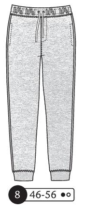 Pantalon de jogging taille élastiquée, fausse braguette, poches aux hanches et poche passepoilée zippée au dos. Bande sur le côté des jambes et bracelets de cheville
