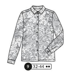 Chemisier manches longues avec fente et bouton aux poignets. Pinces poitrine, fronces au dos sous l’empiècement. Col avec pied de col et boutonnage devant