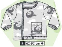 9-Helicopter Fox 10 décembre 2025 Sweat manches longues, fermeture par pressions sur le côté droit Disponible en 62-68-74-80-86-92 cm 01/2012 Précédent 8-Waldo Plus récent 10-Little Rabbit