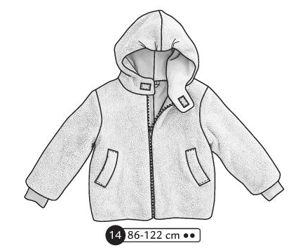Manteau à capuche avec pinces. Poignets en bord côte, poches à revers devant, fermeture éclaire devant et velcro pour refermer la ccapuche