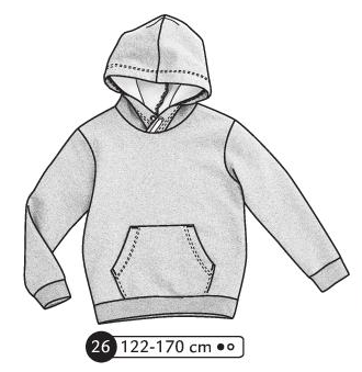 Sweat à capuche à pinces, avec poche kangourou plaquée devant. Poignets et ceinture en bord côte