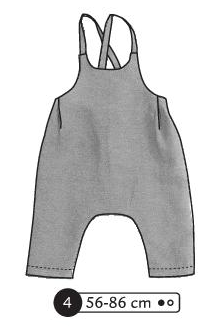 Salopette avec bretelles croisées au dos. Pli sur les côtés, taille élastiquée au dos, poches plaquées au dos et bouton pour fermer les bretelles au dos aussi