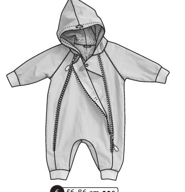 Combinaison pilote avec manches raglans, capuche et 2 fermetures éclaires en biais devant. Poignets et bracelets de cheville en bord côte