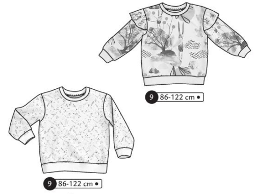 Sweat simple avec ou sans volant aux épaules. Col, poignets et ceinture en bord côte