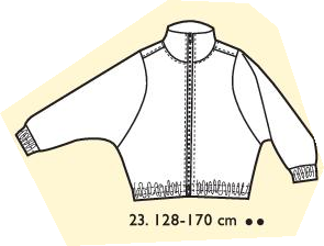 Sweat plus ou moins court selon la version, avec un élastique à la taille ou bien ajout d’un bande de ceinture pour un peu plus de longueur. Emmanchure carrée pour un effet différent.