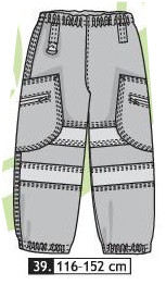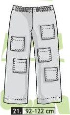 Pantalon taille élastiquée multi-poches, quasi identique au numéro 27 du même magazine, juste modification couleurs et poches. Bas des jambes avec élastique.