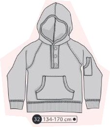 Sweat avec capuche à manches raglans. Poche kangourou devant, bord côte aux poignets et ceinture. Patte de boutonnage sur le devant