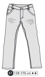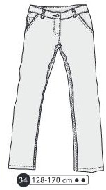 Jeans avec braguette, bouton à la ceinture, poches plaquées au dos et empiècement dos. Option ailes plaquées au dos