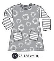 Robe manches longues avec emmanchures décalées sur le haut des bras. Découpes sur le devant
