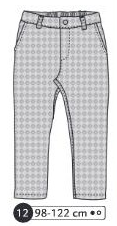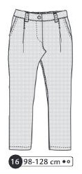 Pantalon avec empiècement au dos sur chaque côté, poches plaquées prises dans l’empiècement dos, poches aux hanches, braguette et bouton à la ceinture. Taille élastiquée au dos