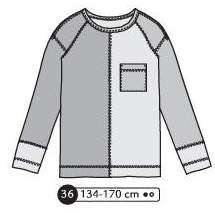 Tee shirt manches longues raglans, pinces aux épaules, devant en 2 pièces. Poche plaquée devant. Découpe en bas des manches