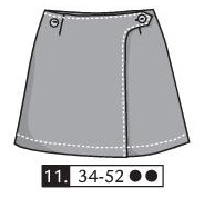 Jupe courte portefeuille, pinces et boutons pour fermer