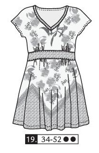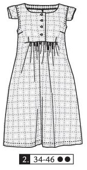 Robe courte en coton avec mancherons, patte de boutonnage devant et fronces devant et dos