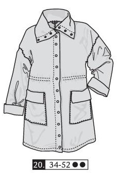 Manteau imperméable demie saison sans capuche, grand col. Se ferme par pressions devant. Se resserre à la taille