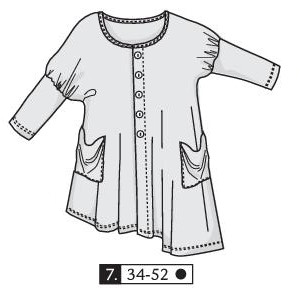 Cardigan asymétrique, manches resserrées à partir du coude. Boutonnage devant, ample