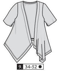 Gilet manches 3/4 fendues, pas de système de fermeture, pans en pointe