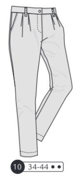 Pantalon à plis plats devant et pinces dos, braguette et bouton à la ceinture.