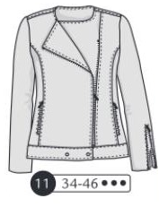 Veste cintrée, blouson avec manches zippées en bas, poches zippées et boutons à la ceinture. Découpe devant et dos. Fermeture sur le côté