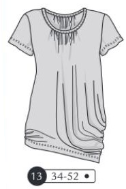 Tunique drapée resserrée en bas, froncée à l’encolure devant et dos. Manches courtes