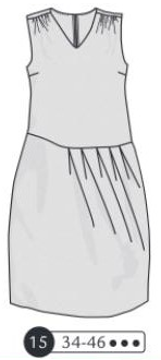 Robe sans manche, froncée aux épaules et pinces poitrine. Jupe plissée d’un côté. Pince dos et fermeture invisible au dos