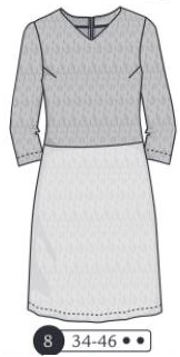 Robe droite manches 3/4, pinces poitrine, coude et encolure dos. Fermeture invisible au dos
